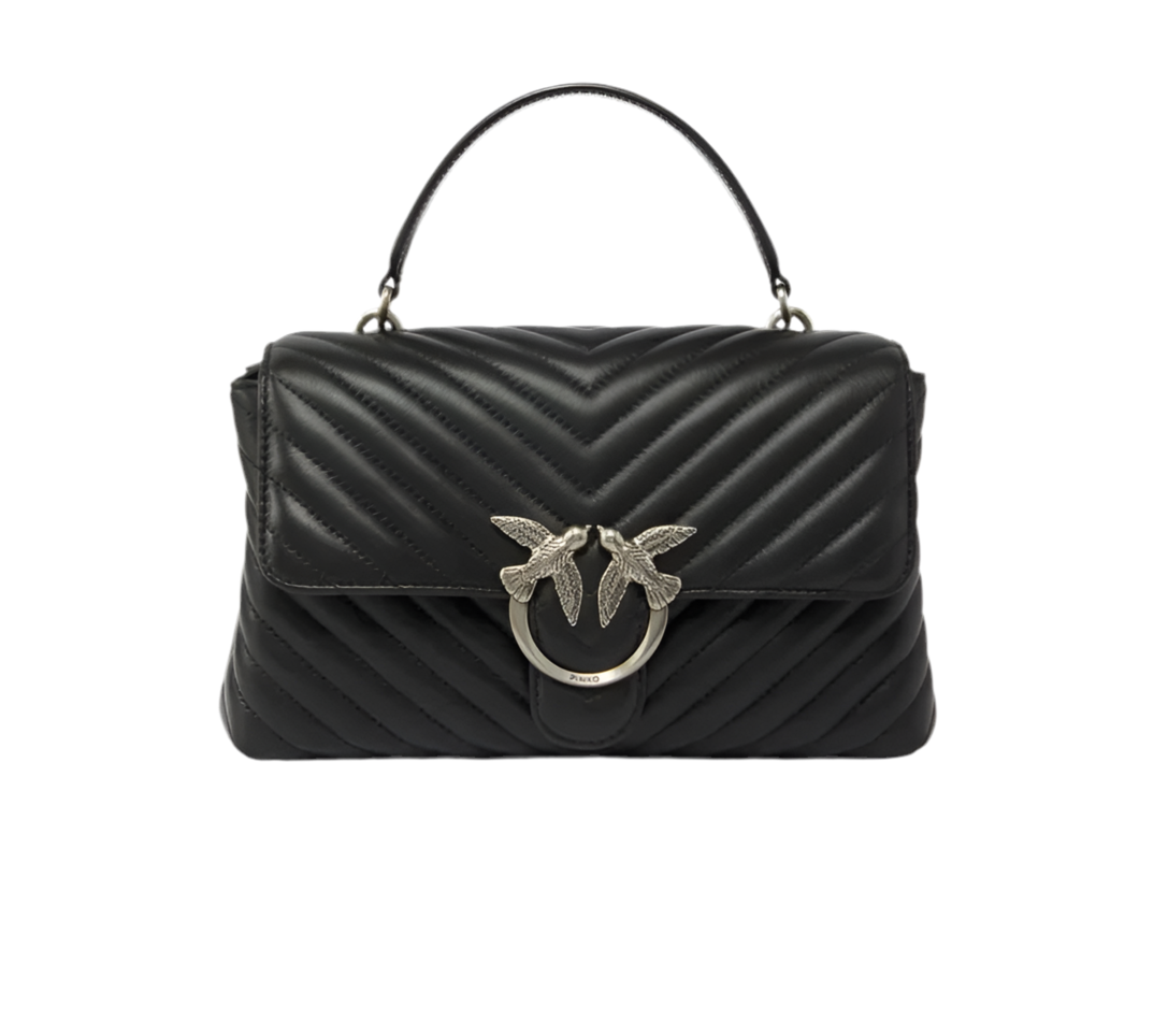 Borsa a mano 'Love Lady Puff Classic' in pelle chevron, modello con chiusura flap con logo metallico, dotata di tracolla in catena removibile.