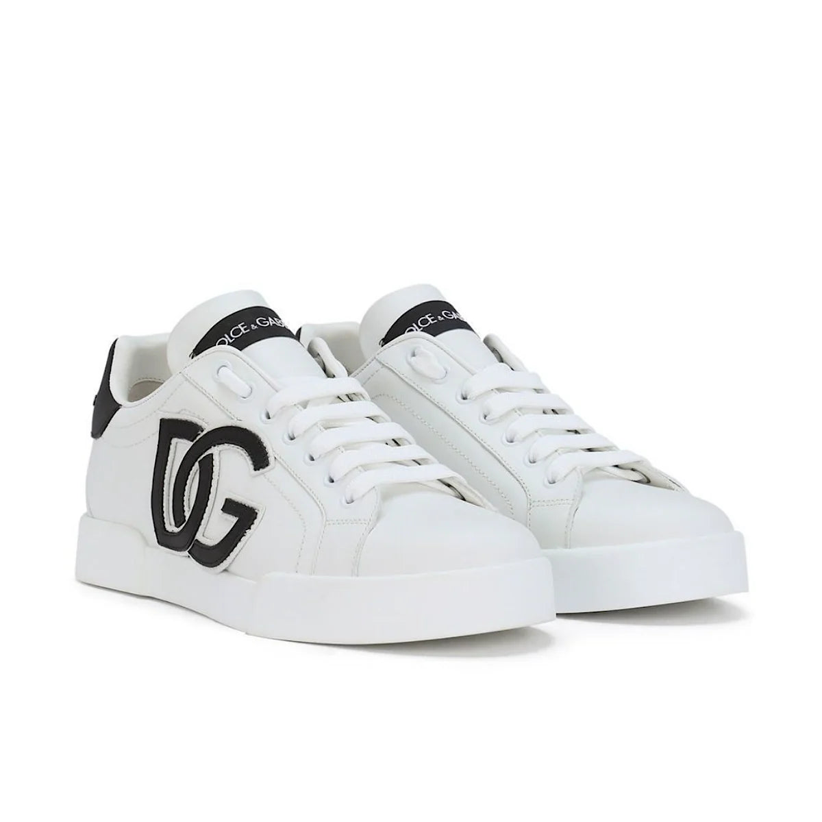 L'iconica sneaker Portofino realizzata in pelle di vitello nappata viene presentata in una nuova versione. Dalla linea essenziale, è personalizzata da patch logo DG in pelle di vitello bicolore.