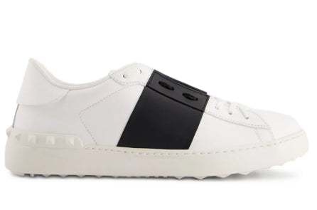Sneaker Valentino Garavani Open in vitello bianco - Banda colorata a contrasto in vitello - Dettaglio borchie in gomma sul retro - Suola in gomma bianca - Made in Italy
