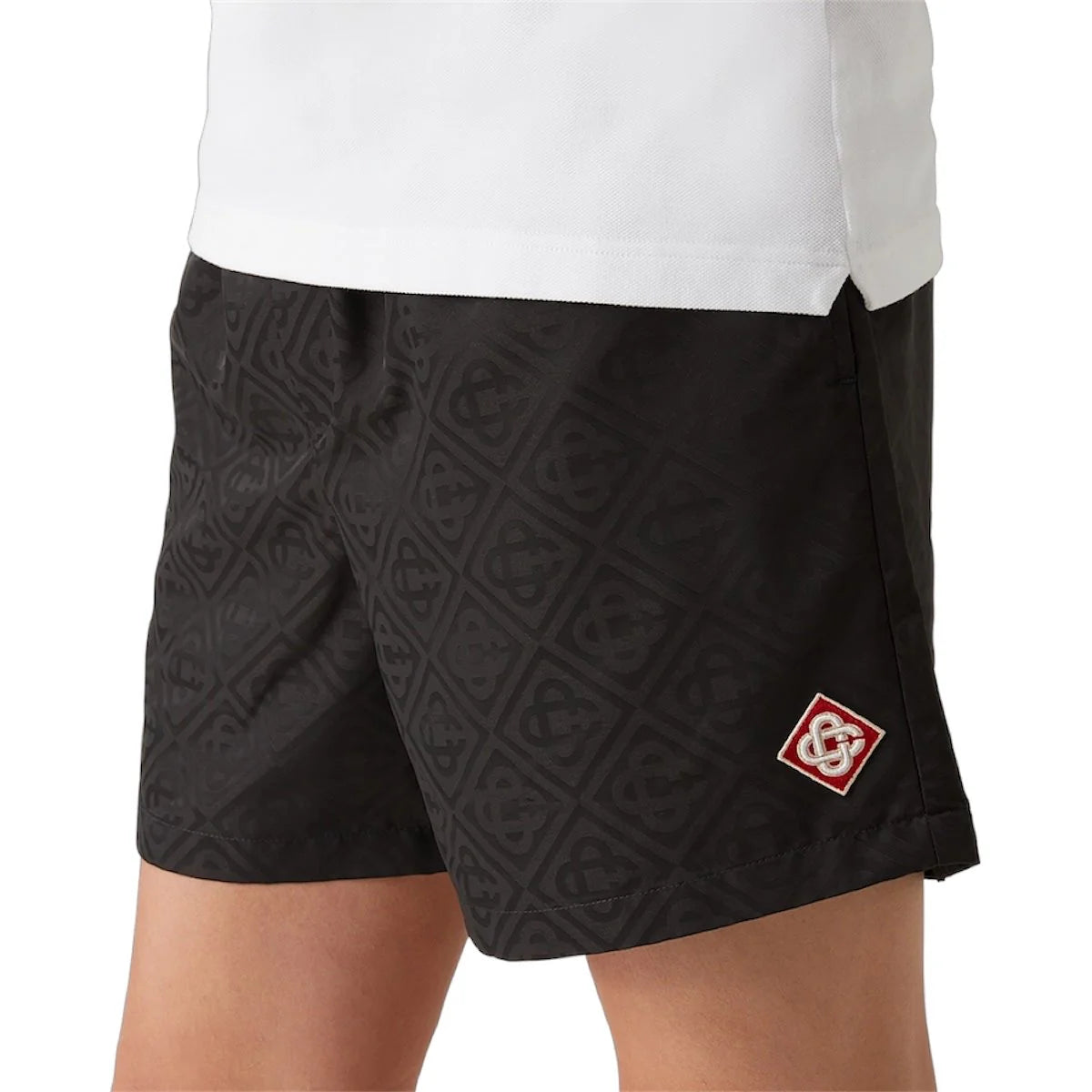 I Monogram Jacquard Swim Shorts di Casablanca presentano il monogramma a rombi del brand tessuto su tessuto tecnico jacquard per costumi da bagno. Progettati per l'abbigliamento da spiaggia e da piscina, combinano un taglio rilassato con una vita elasticizzata e pratiche tasche. Caratteristiche principali: Nero | Poliestere | Tessuto tecnico jacquard per costumi da bagno | Cintura elasticizzata | Chiusura interna con coulisse | Tasche laterali interne nella cucitura | Fodera in rete | Monogramma a rombi jacquard all-over | Dimensioni e vestibilità: Vestibilità rilassata | Composizione e cura: Principale: 100% poliestere | Lavaggio delicato in lavatrice
