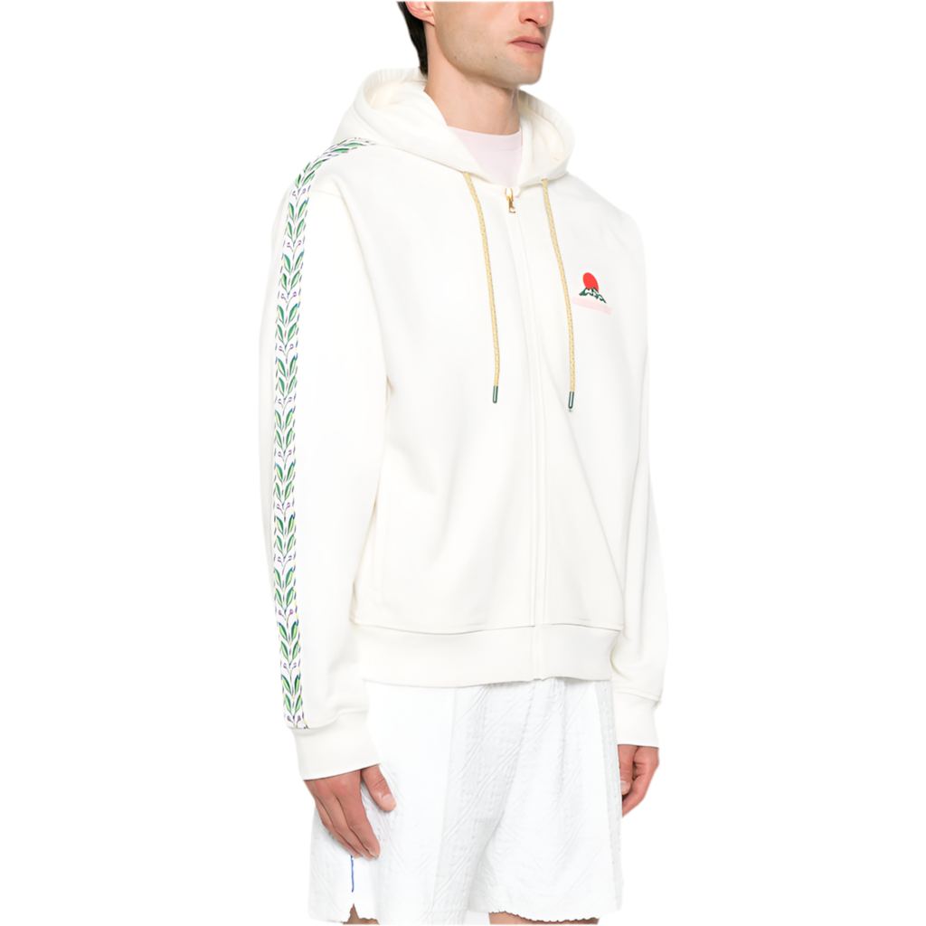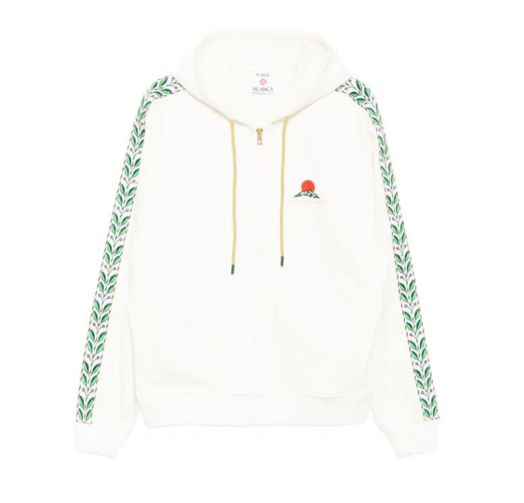 -Felpa con cappuccio e zip -Ricamo sul petto -Design con fettuccia laterale